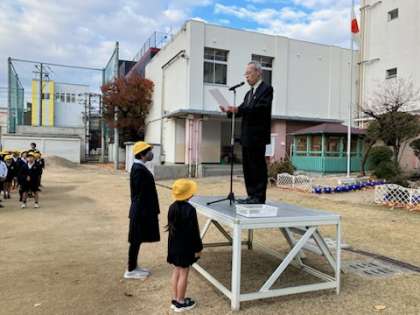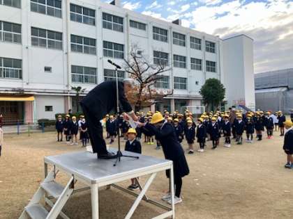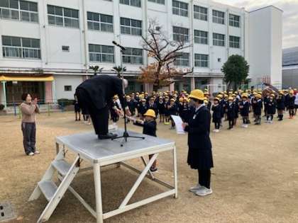 6年生と2年生の児童が、校長先生から賞状を受け取りました。