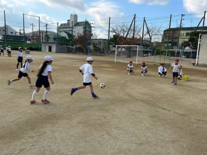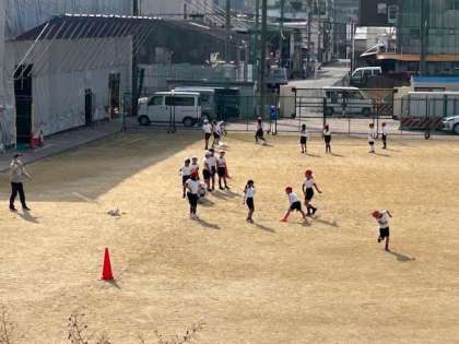 寒空を吹き飛ばすように、2年生の子どもたちが、元気に声をかけあいながら、キックベースボールをして楽しんでいました。