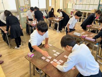 1組の子どもたちが「百人一首」をしていました。
