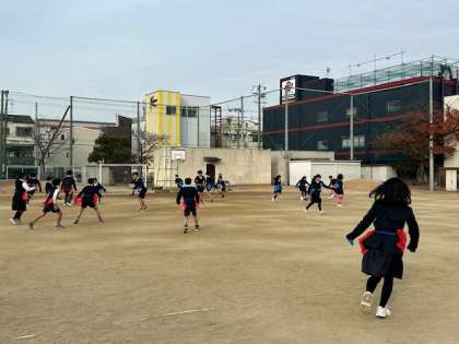 日頃の学習の疲れを吹き飛ばすように、全力疾走で逃げたり追いかけたりしていました。