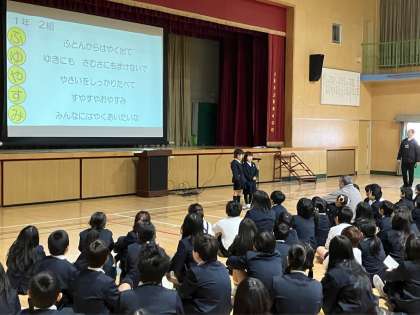 生活先生からのお話と、各学級の代表児童による「あいうえお」作文の発表です。