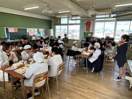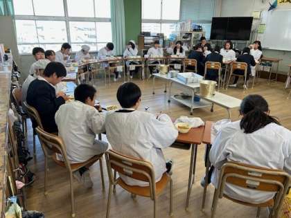 1組・2組ともに、今日は席を工夫しながら、子どもたちが、楽しく会話しながら食事をしていました。