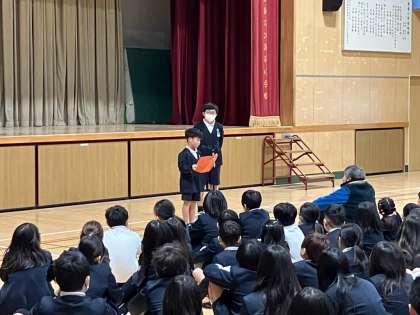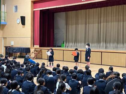 1年生の児童も、学習や生活で頑張っていきたいことを自分の言葉で発表しました。