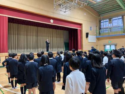 校長先生から「あけましておめでとうございます」とあいさつがあり、児童からも「あけましておめでとうございます」と元気な声が返ってきました。