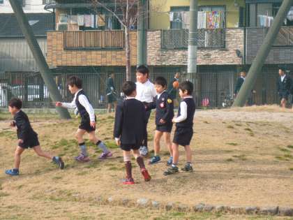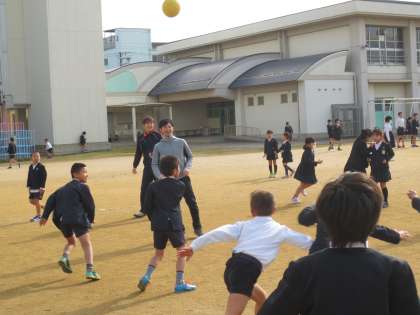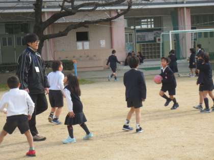 子どもたちが元気に遊んでいる運動場です。