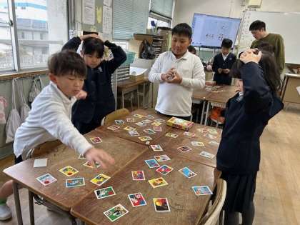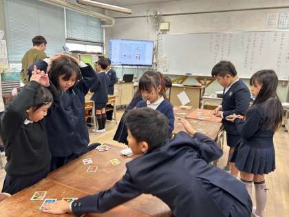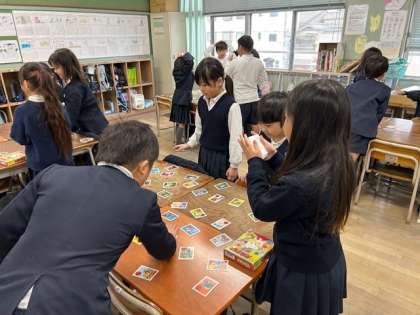 子どもたちが、「いろはカルタ」をして楽しんでいます。