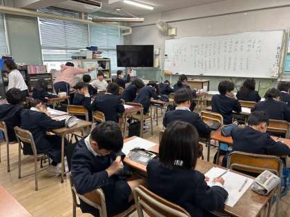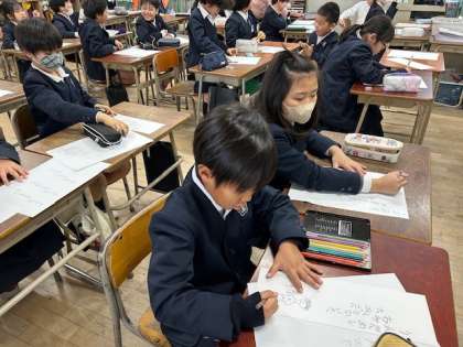 国語科(書写)の学習で、「冬のはいく(俳句)」を考えています。