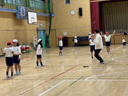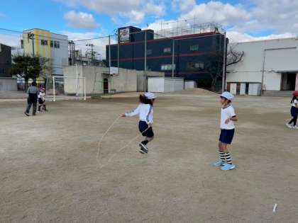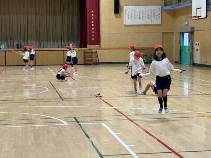 学級ごとに、体育館と運動場に分かれて「なわとび運動」をしました。