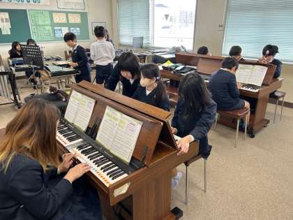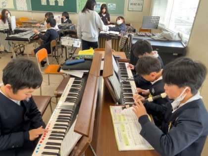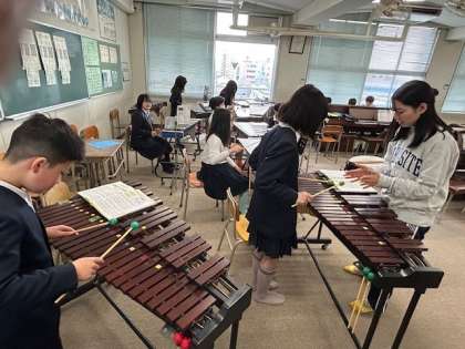 今日は、オルガン・鉄琴・木琴・リコーダーと、各パートに分かれて子どもたちが熱心に練習していました。