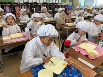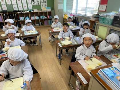 教室では、おいしそうに「かす汁」や「栗きんとん」を食べていました。
