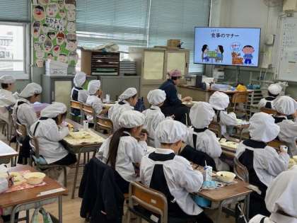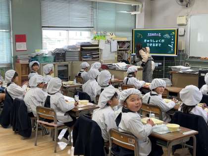 今日も、給食の時間に、給食に関するビデオ放送が流れていました。