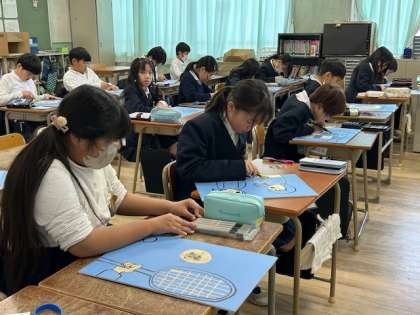1組の図画工作科では、子どもたちが版画制作に集中して取り組んでいました。