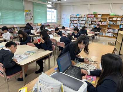 2組の図書の時間では、子どもたちが本の世界に浸っていました。