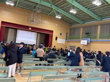 合奏後のインタビュー、親子でのふれあい、感謝の気持ちを込めての合唱、のようすです。