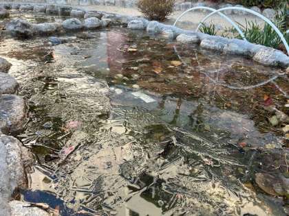 結構な厚さの氷です。休み時間に、子どもたちも見ていたようです。