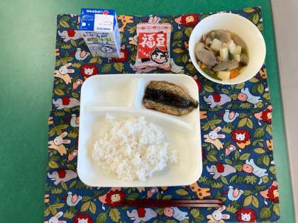 鬼の嫌いないわしの頭をヒイラギにさして門や戸口にたてたり、鬼打ち豆と称するいった大豆を「鬼は外、福は内」の掛け声とともにまいたりします。給食では入り大豆がつきます。