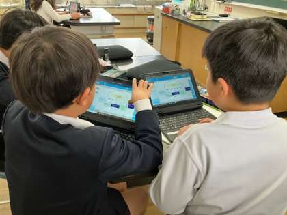 Sky Menu の「発表ノート」を活用し、班ごとに、意見をまとめて発表しました。