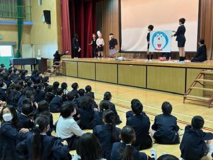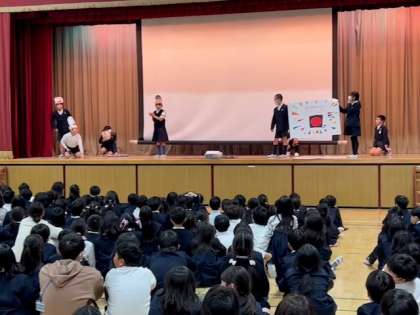 「スマホを見すぎない、宿題をする、早寝早起きをする」ことの大切さを、劇を通して訴えました。