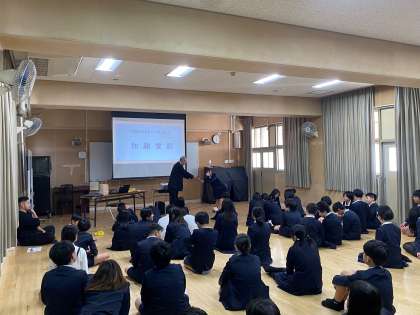 授業後に、校長先生が一人ずつ全員の名前を読み上げ、「和顔愛語」と手書きした「色紙」が、プレゼントとして手渡されました。