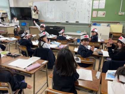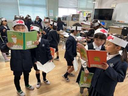 「わー、まぐろがきた!」…… 小さなスイミーになって、そのあとの言葉をつなげ、読みあっていました。