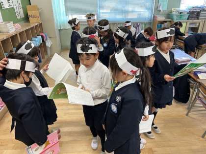 今日は、うなぎやくらげなど 物語に出てくる生き物を「○○を見つけたよ」の○○に入れて、それに続く文章を自分たちで考え発表しあいました。