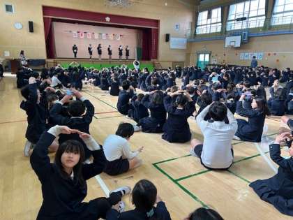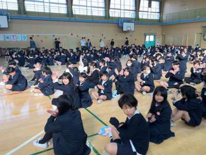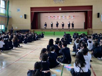 6年生と在校生が、たてわり班で一緒になり、クイズで楽しく交流しました。