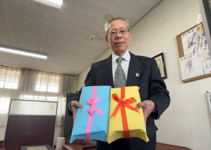 今日の「卒業生を祝う会」の卒業生から在校生へのプレゼントの時、サプライズで私(校長)へも「ぞうきん」のプレゼントがありました。嬉しいサプライズです。
