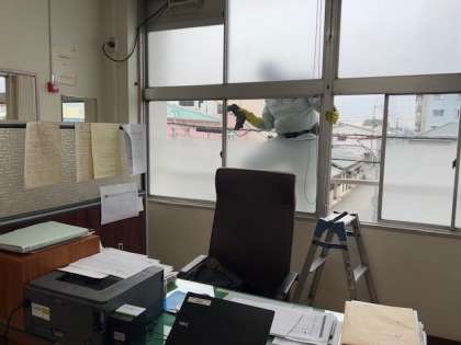清掃業者に依頼して、普段できない高所の窓清掃をしてもらいました。