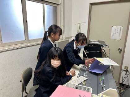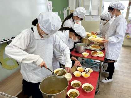給食委員会の放送のようすと、5年生の配膳のようすです。