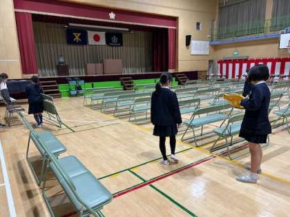 卒業式に向けて、教職員と5年生の児童で、再度の準備と最終点検を行いました。
