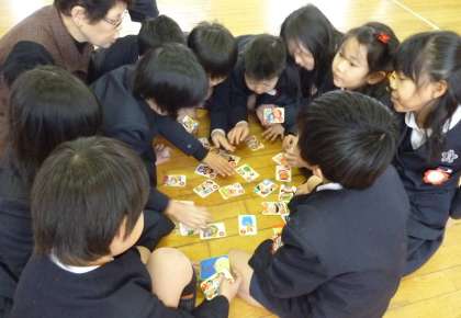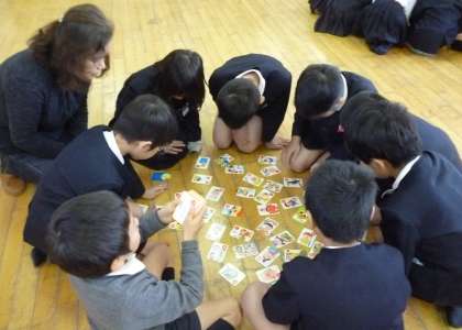 読み札を読むたびに、みんな集中して絵札をさがして取っていました。