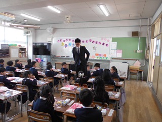1年生の入学を祝って2年生が、歓迎の演技を披露しました。大きな声で、心をこめて「巽南小学校は楽しいことがいっぱいあるよ」
