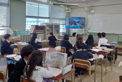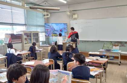 挿絵から気が付いたことを発表し、自分たちの町の様子と比べていました。