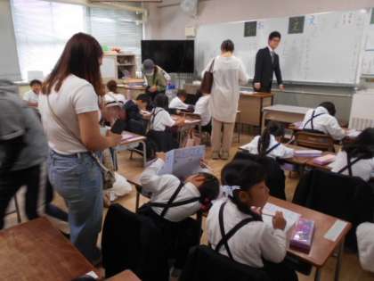 実際にひらがなノートを使って練習するところをおうちの人にも見ていただきました。しんけんにゆっくり書く姿に、おうちとは違う一面を見ていただくことができたのではないでしょうか。