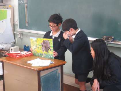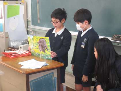 楽しかった本や面白かった本の紹介もかねています。低学年の児童たちはとても楽しみにしています。