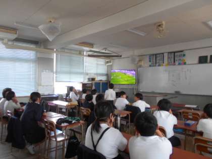 サッカークラブと卓球クラブの様子です。サッカークラブも本日は運動場が使えないため、実際の試合の動画を観戦しました。ナイスプレーが出ると立ち上がって喜ぶ場面もみられました。