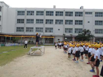 初日は、運動委員会のメンバーが、元気のいいあいさつでみんなを迎えてくれました。