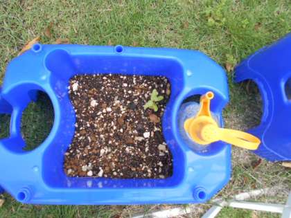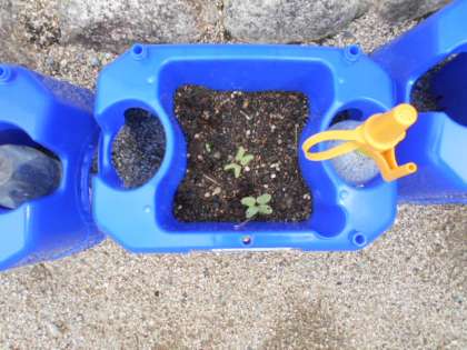 先週末、朝顔の種を植えた1年生の植木鉢をのぞいてみると・・・