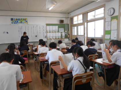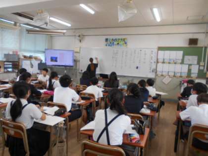 こちらの教室では、説明文「イースター島にはなぜ森林がないのか」について学習をしていました。文章の中で大きなモアイ像をどうやって・・・とあったので、その仕組みをタブレットで調べ、しっかりとイメージをつかみ学習を進めていました。