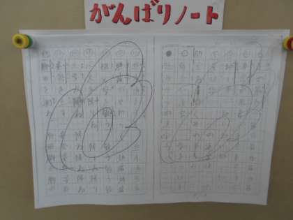 一番下の写真は教室前扉に貼ってあった頑張りノートです。次に教室へ行ったときどんなノートが貼ってあるのか楽しみが一つ増えました。