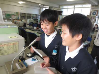 保健委員会の児童がお昼の放送をして、「手あらい」への意識を全校に高めてもらっています。「給食時間になりました。給食前の手洗いはできましたか。給食前はせっけんをつけて15秒以上ていねいに手を洗いましょう。洗った後は、必ずハンカチで手をふきましょう。」と放送で繰り返し呼びかけています。