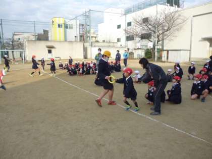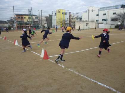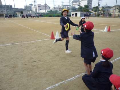 6年生は、1年生に取りやすいように工夫してバトンを渡していました。みんな楽しく一生懸命に走っていました。