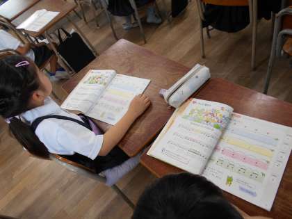 「はくやドレミとなかよし」の学習で、音符ごとの音の長さの違いに出会いました。