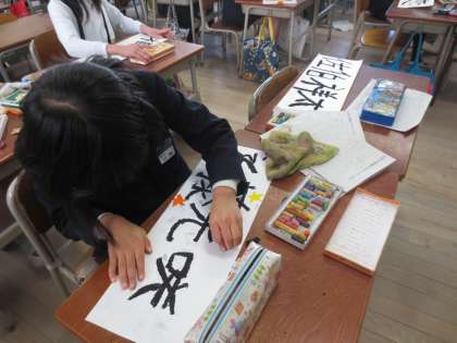 「自分の名前」をクレパスではっきりわかるように大きく書いています。