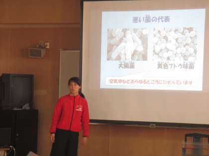 腸の中にいる細菌のお話です。一人が100兆個(1キログラム)の細菌を腸にもっているそうです。