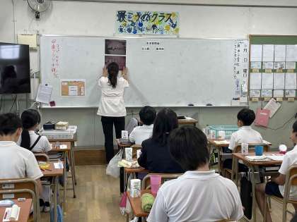 歯科衛生士と学校歯科医の先生にきていただき、歯垢や歯周病について学習しました。