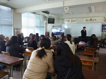 音楽室では5年生の発表会の様子をDVDでみていただいています。