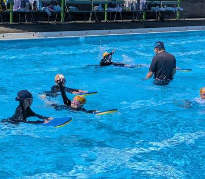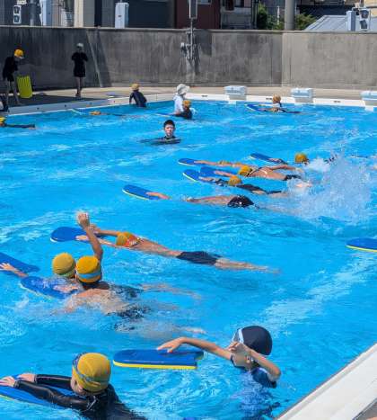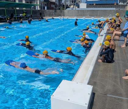 ビート版を使って、バタ足や手の動きを片手ずつ練習しました。