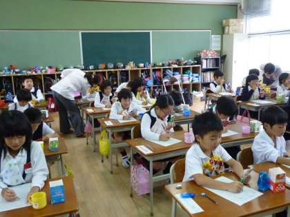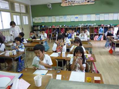 各自が持ってきた歯ブラシを使い、歯磨きの指導を受けました。