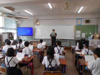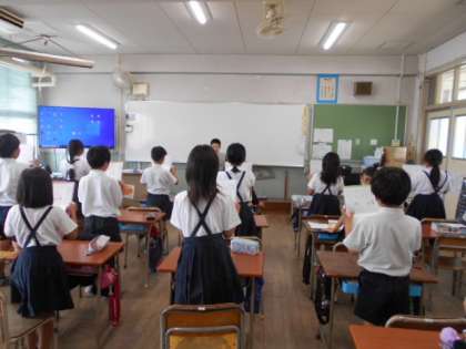 こちらでは、1学期に取り組んできた音読で先生と掛け合いをしていました。